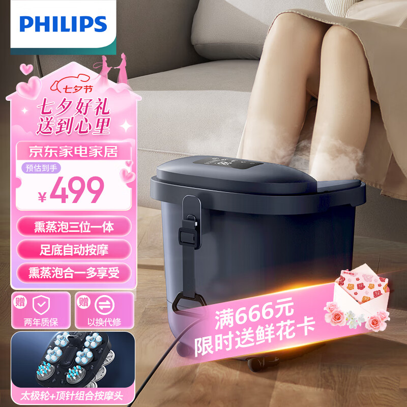 飞利浦(PHILIPS)泡脚桶恒温加热泡小腿洗脚盆 电动按摩揉捏加热足浴盆全自动三伏天泡脚养生情人节七夕送礼3205F价格:539.00元!