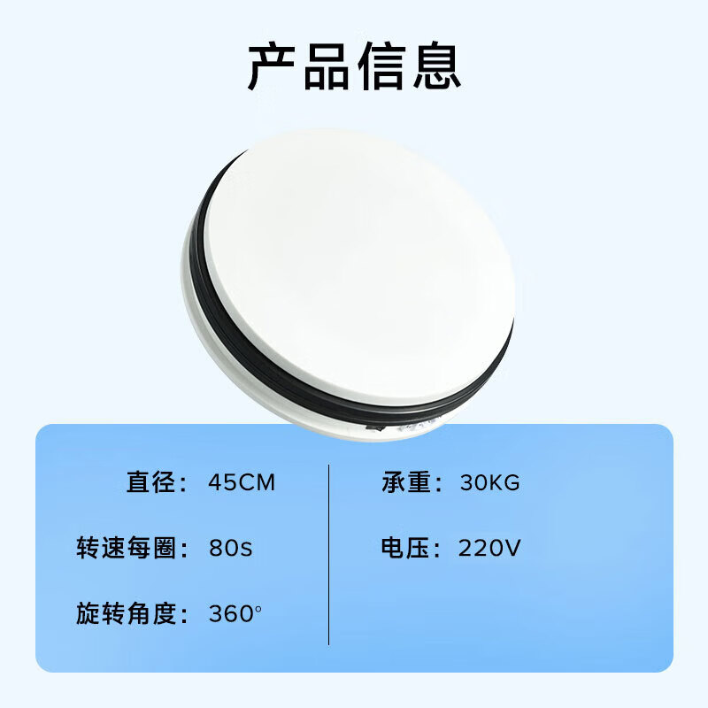 贝阳45cm白色顺时针80秒一圈(承重约30kg)配置参数: