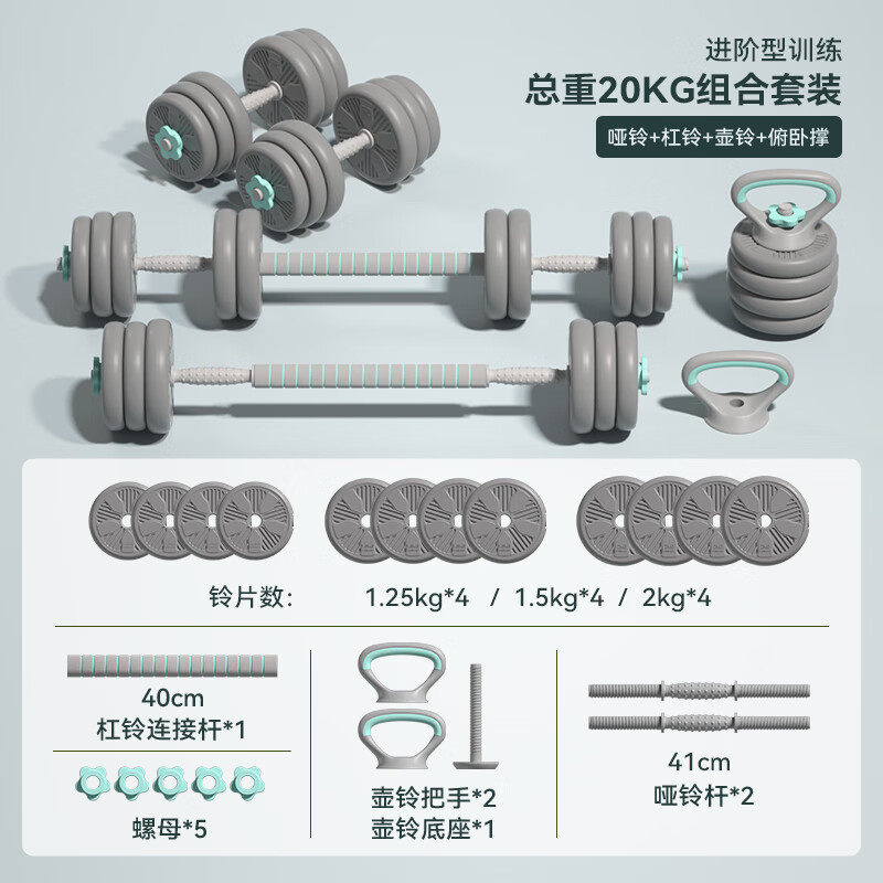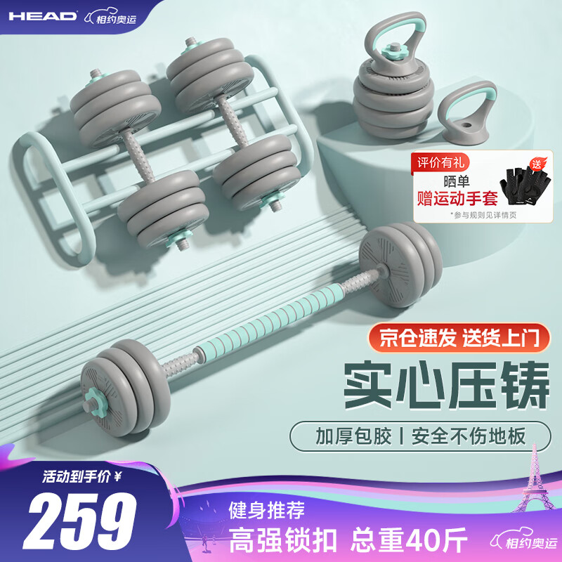 HEAD海德哑铃男多功能杠铃组合套装壶铃可调节可拆卸包胶哑铃20kg价格:259.00元!