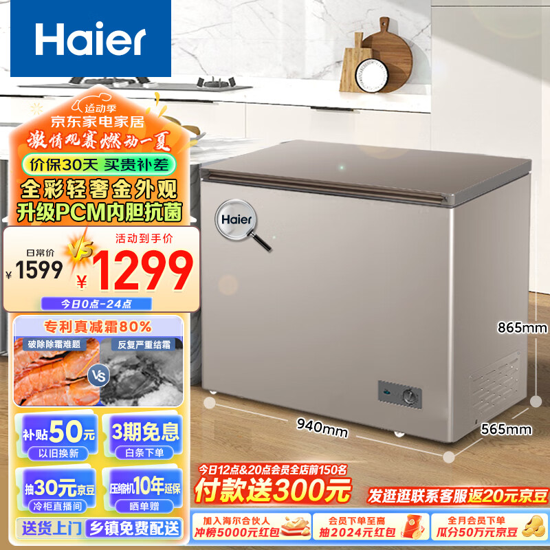 海尔(Haier)227升低霜家用商用冷藏柜冷冻柜小冰柜小型冷柜小冰箱海尔冰柜BC/BD-227GHPCD以旧换新价格:1199.00元!