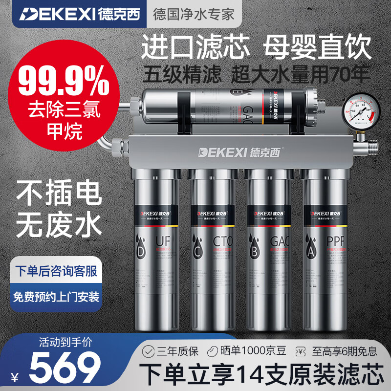 德克西(DEKEXI)净水器家用厨下式自来水不锈钢过滤器前置净水机超滤饮水机价格:769.00元!
