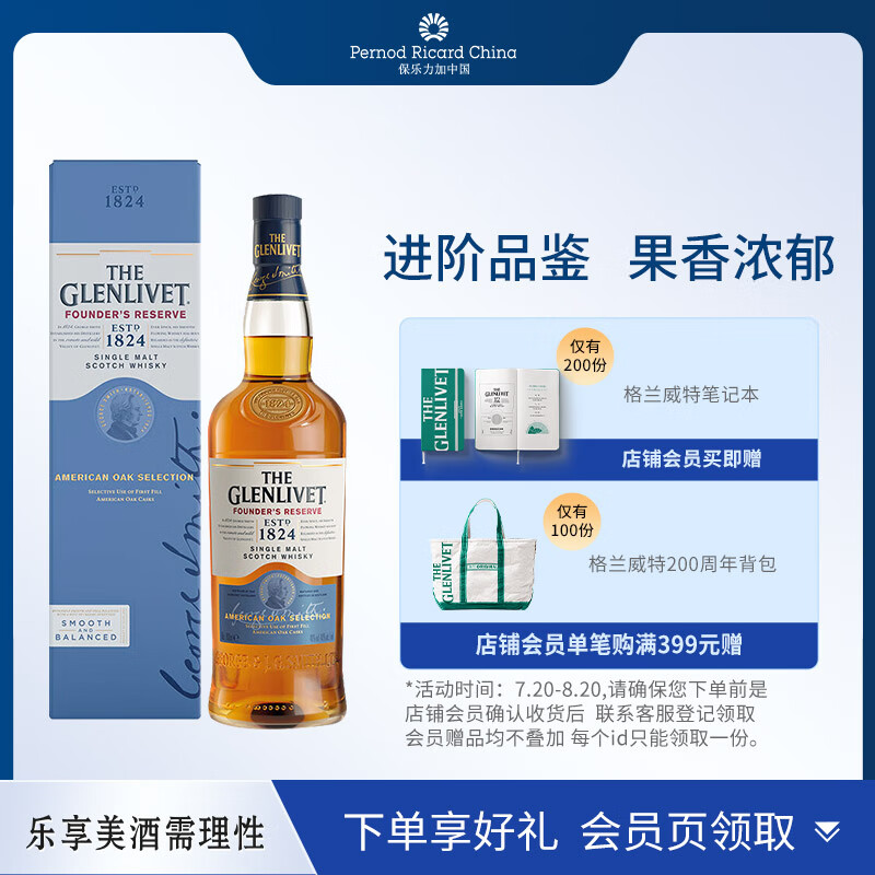 格兰威特(ThE GLENLIVET)创始人 苏格兰 单一麦芽 威士忌 洋酒 700ml 甄选系列价格:199.00元!