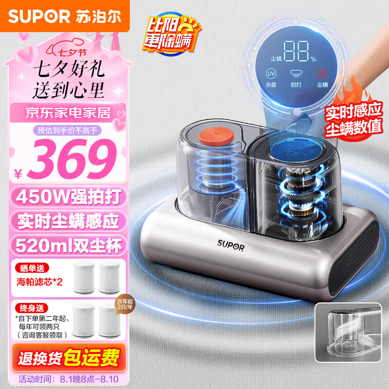 苏泊尔(SUPOR)除螨仪大吸力双尘杯尘螨分离家用床上吸尘器手持紫外线去螨虫神器除螨一体机礼品推荐ERC-TT6C价格:369.00元!