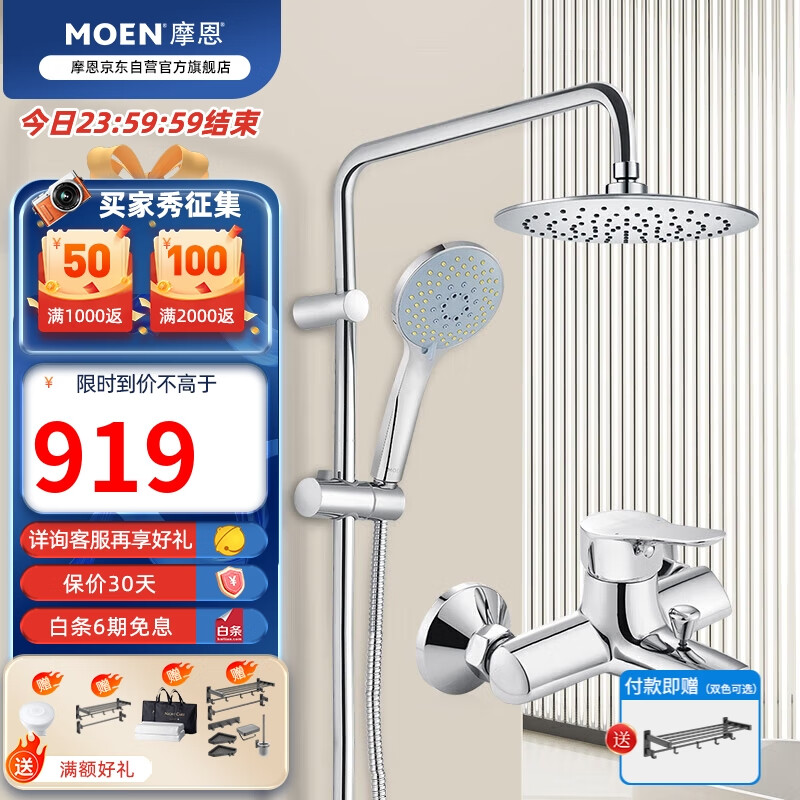 摩恩(MOEN)淋浴花洒套装 空气注入节水增压花洒喷头 多功能手持莲蓬花洒套装价格:1069.00元!