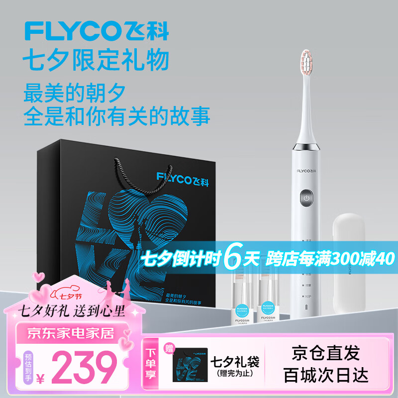 飞科(FLYCO)电动牙刷成人全自动智能声波软毛护龈深层清洁情侣送男友送女友生日七夕情人节礼物FT7205皓月白价格:251.57元!