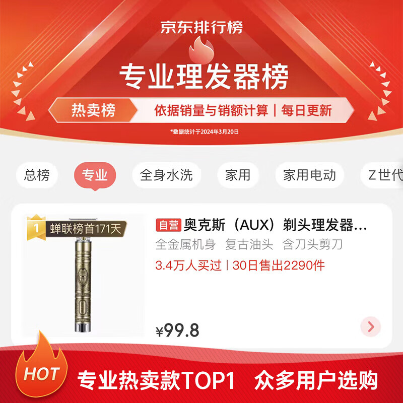 奥克斯(AUX)剃头理发器电推子成人理发推子雕刻电推剪油头推剪剃头推子光头神器理发器刻痕修边工具X2高配价格:99.00元!
