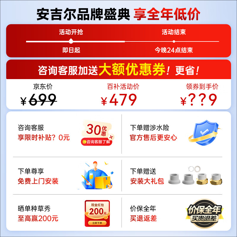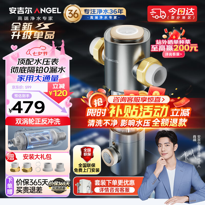 安吉尔【肖战代言】前置过滤器前十名 自动反冲洗防爆自来水过滤器7T全屋家用净水器J3526-GWG-6000价格:499.00元!