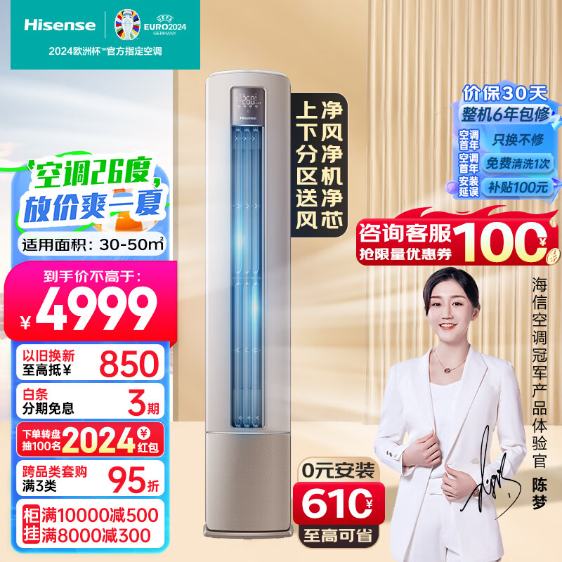 海信(Hisense)3匹 健康抑菌 上下分区送风超大风量新一级能效智能AI控温 立式客厅空调柜机 KFR-72LW/S550-X1价格:4999.00元!