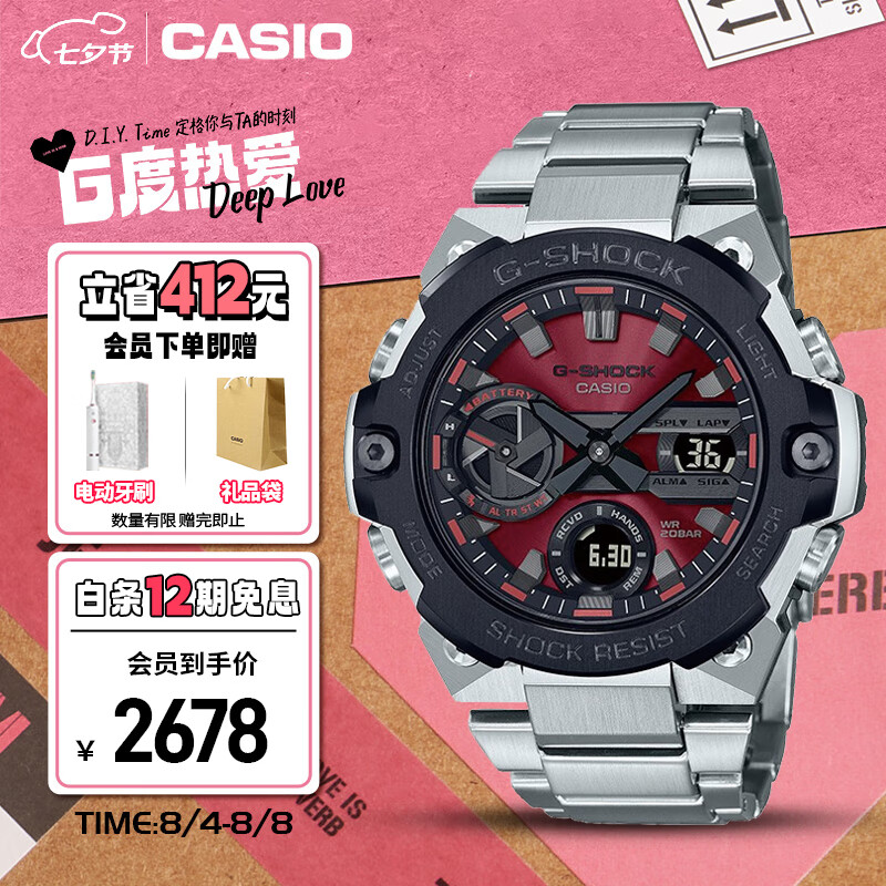 卡西欧(CASIO)手表男G-SHOCK钢铁坚毅之心运动电子表七夕送男友GST-B400AD-1A4价格:2190.00元!