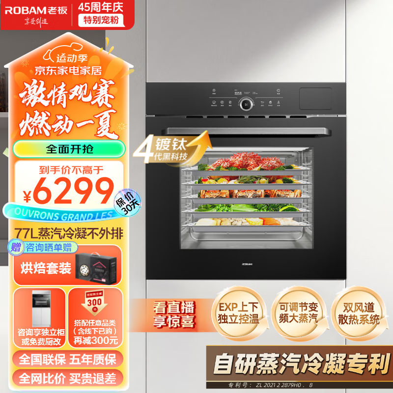 老板(Robam)CQ9662D不生汽系列77L大容量蒸烤箱一体机嵌入式EXP专业控温家用蒸箱烤箱蒸烤炸炖4合1釉感自清洁价格:6299.00元!