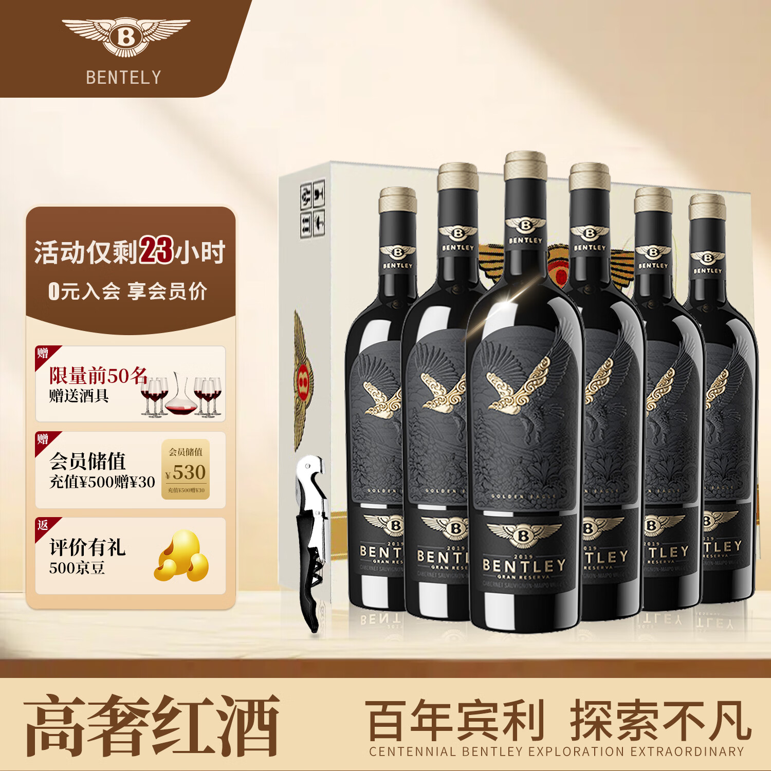 宾利(BENTLEY)红酒智利原瓶进口特级珍藏级干红葡萄酒750ml*6瓶整箱装礼盒送礼价格:798.00元!