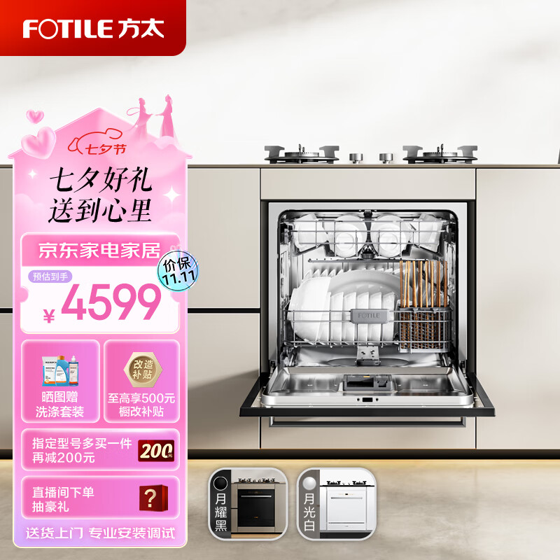 方太洗碗机N1S系列嵌入式家用 13套大容量 灶下洗碗机 02-NJ01升级 100℃蒸汽除菌NJ01S价格:4599.00元!