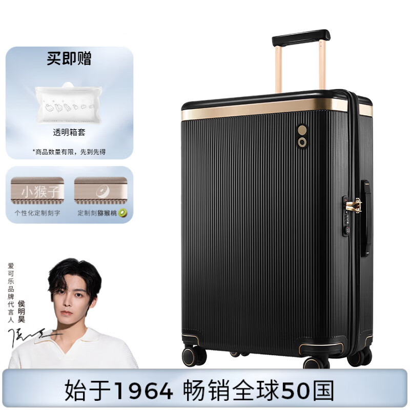 爱可乐(Echolac)明星同款大容量行李箱出国旅行箱王朝防刮拉杆箱黑色20吋PC142价格:1179.00元!