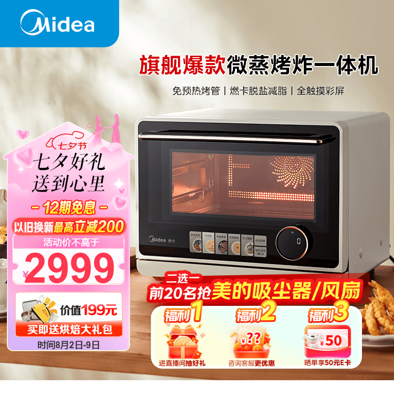 美的(Midea)寻味Pro系列 微蒸烤炸台式一体机 家用变频微波炉 空气炸蒸烤箱电烤箱 304不锈钢内胆 杏色(G21)价格:2999.00元!