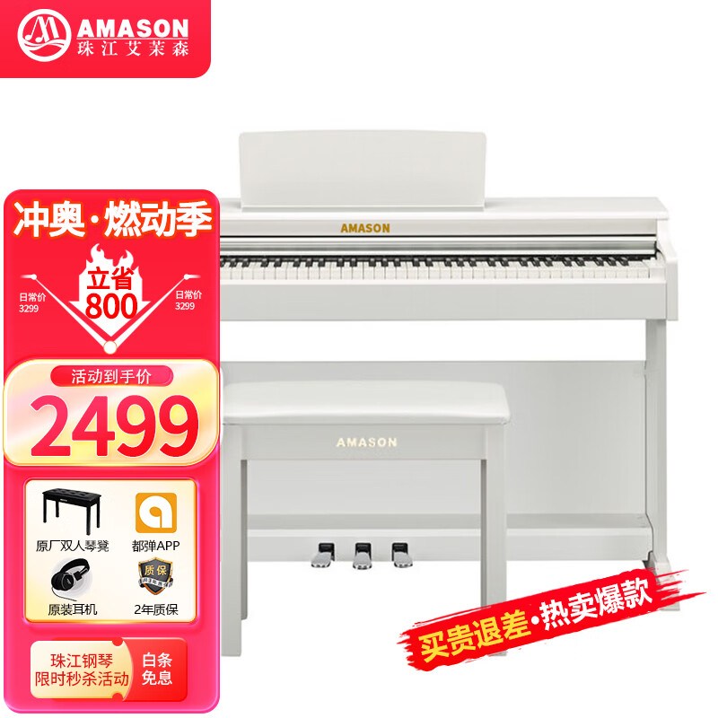 艾茉森(Amason)珠江钢琴 考级电钢琴88键重锤数码电子钢琴专业成人儿童V03S白色价格:3299.00元!