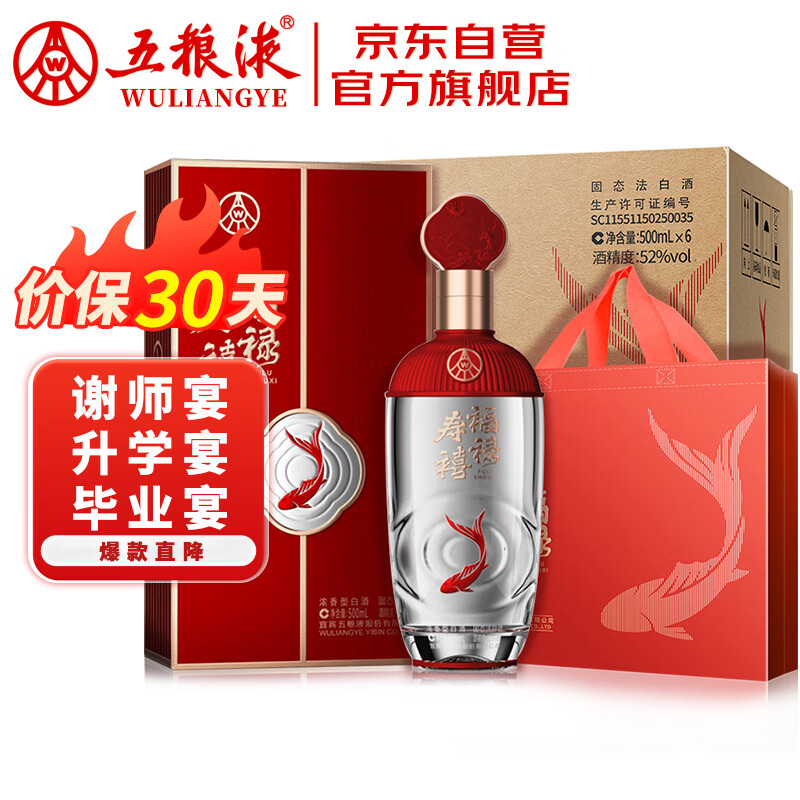 五粮液股份 福禄寿禧经典 浓香型白酒52度500ml*6瓶整箱装 婚宴中秋送礼价格:1079.00元!