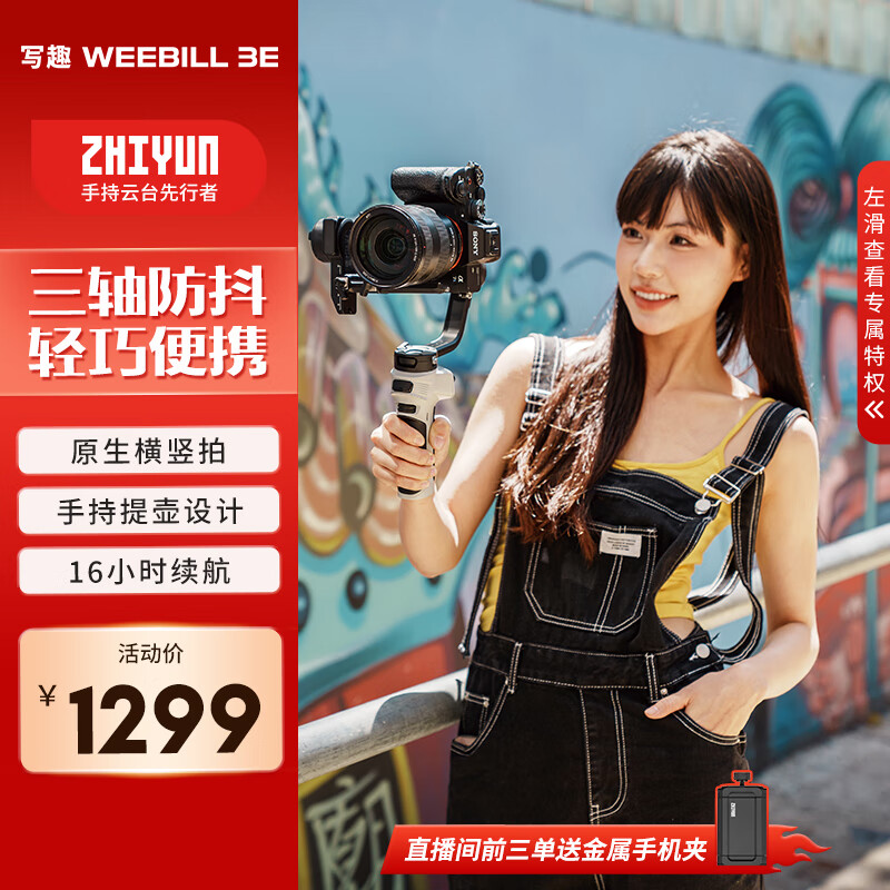 zhi yun智云 写趣手持云台稳定器 相机微单单反稳定器防抖拍摄稳定器自拍杆WEEBILL 3E 标准版价格:1299.00元!