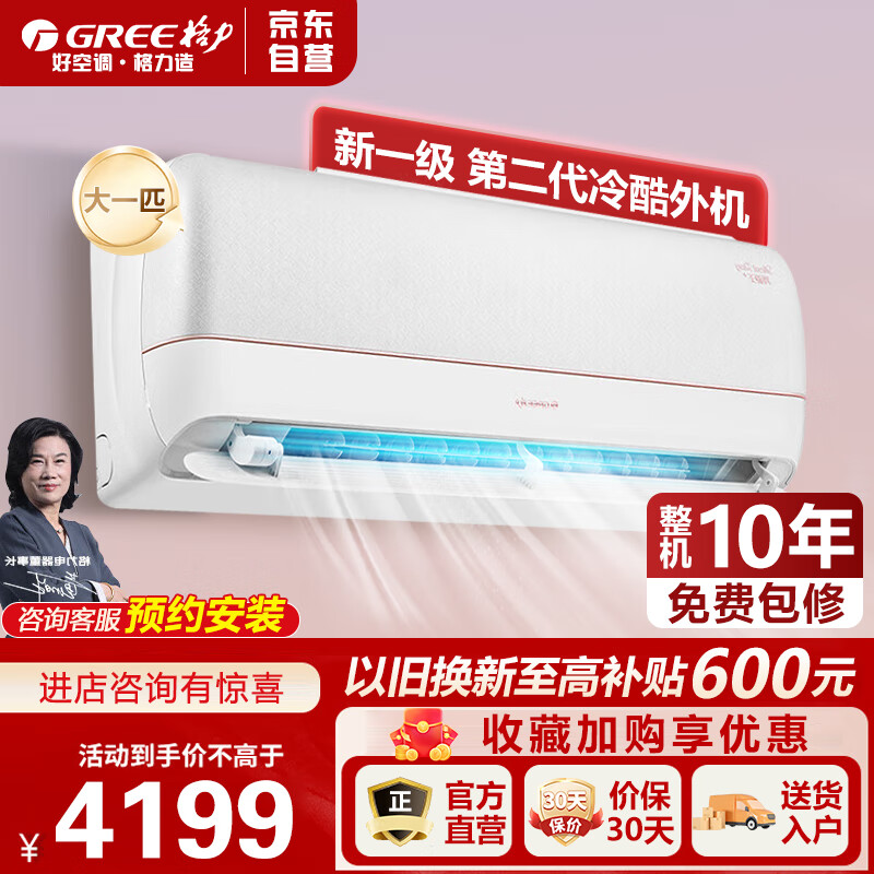 格力(GREE)空调大1匹 冷静王+ 新一级能效 变频冷暖自清洁 大风量 壁挂式空调挂机 智选(1)价格:4099.00元!