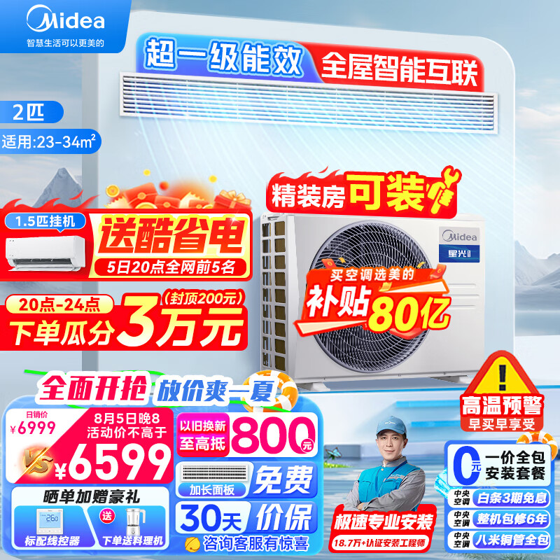 美的(Midea)中央空调风管机一拖一2匹一级能效变频冷暖家用客厅嵌入式星光科技版KFR-51T2W/B3DN1-XG(1)Ⅲ价格:6999.00元!