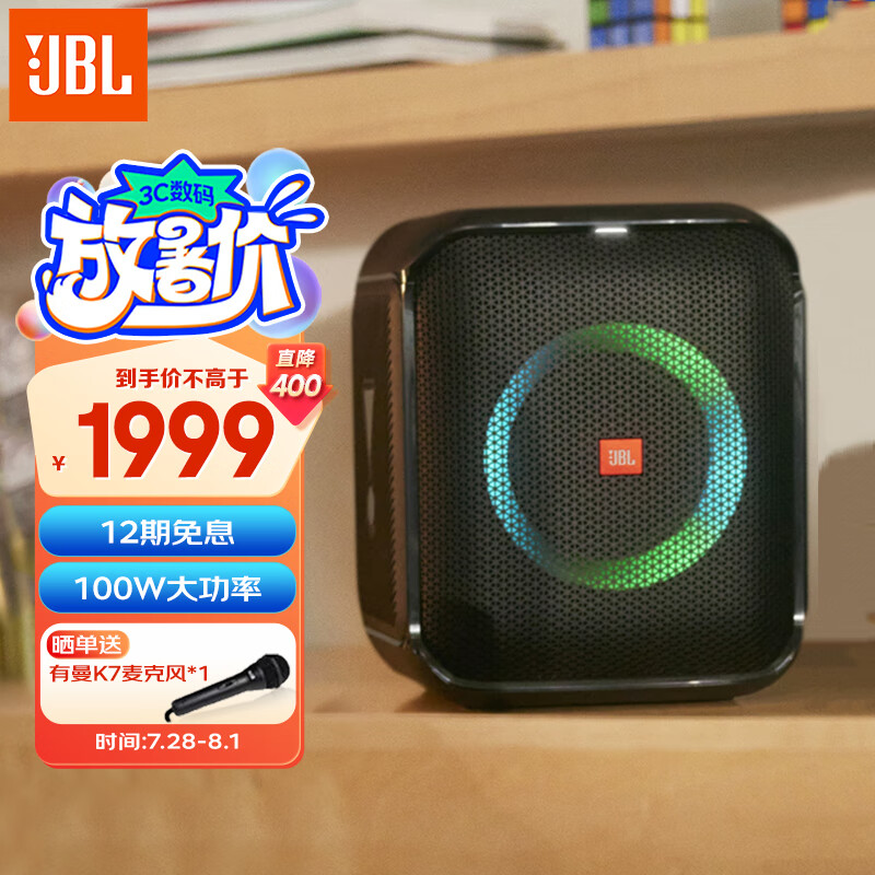 JBL Partybox Encore Essential 音乐战将无线蓝牙音响户外便携移动音箱低音炮教师扩音器广场舞K歌价格:2399.00元!