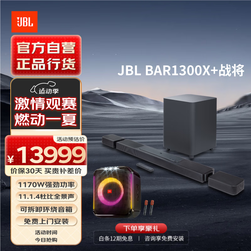 JBL BAR1300X回音壁电视音响+音乐战将户外便携KTV音响 家庭影院无线蓝牙音箱套装Soundbar价格:13999.00元!