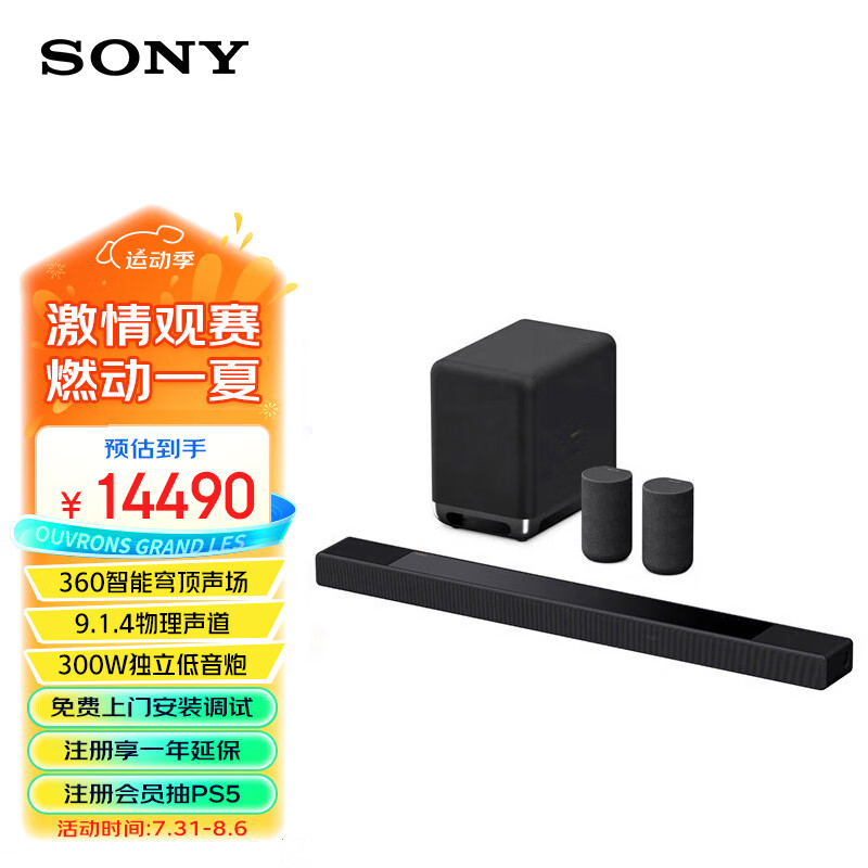索尼(SONY)HT-A7000+SW5+RS5 环绕套装 360智能穹顶 9.1.4 4K120 全景声 回音壁 家庭影院 电视音响 蓝牙价格:14490.00元!