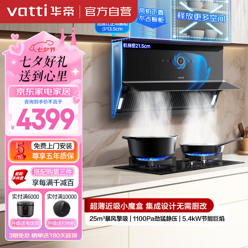 华帝(VATTI)抽油烟机超薄近吸家用侧吸变频大吸力燃气灶具烟灶套装25风量自动清洗华帝超薄小魔盒i11C16天然气价格:4399.00元!