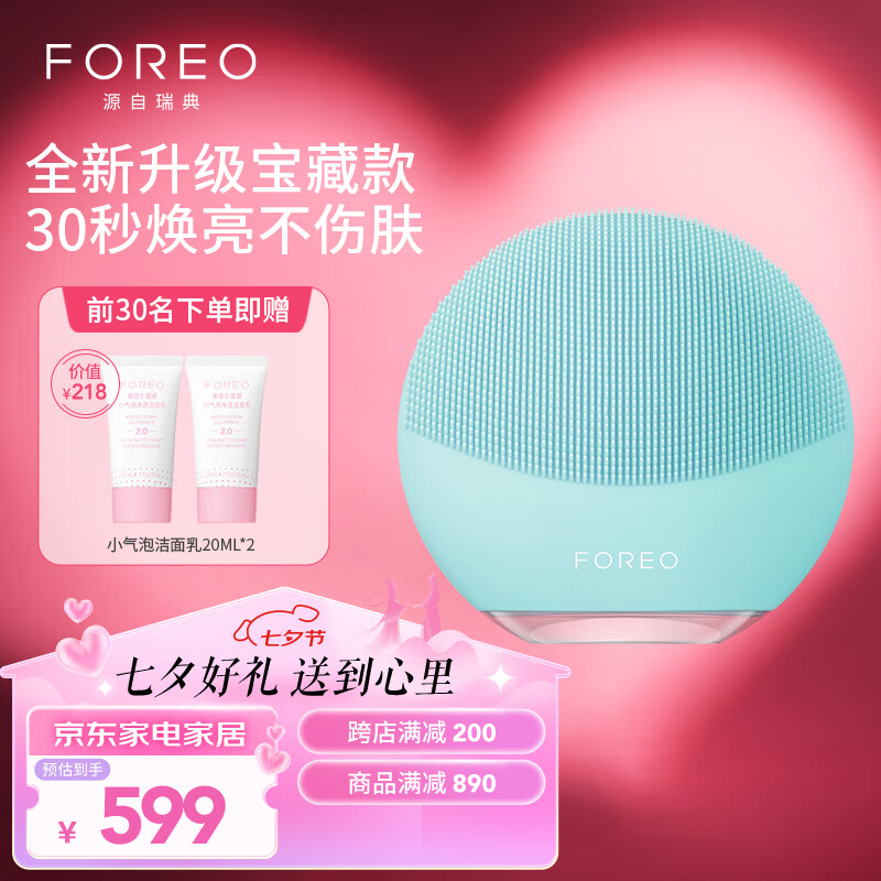 斐珞尔(FOREO)露娜洁面仪LUNA mini3净透洁面仪平衡油脂洗脸仪电动清洁毛孔洗脸神器 薄荷蓝 充电款价格:1689.00元!