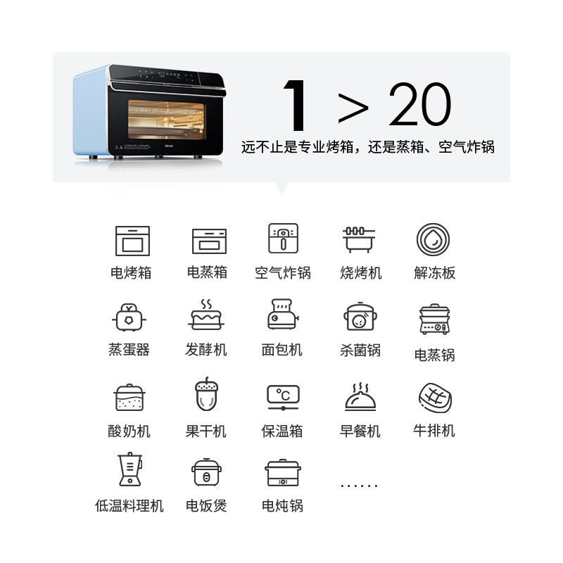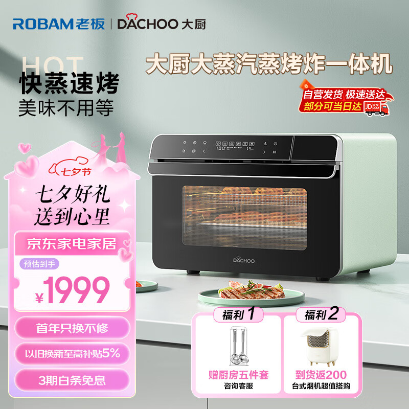 大厨老板蒸烤箱一体机炸蒸烤一体台式空气炸电烤箱家用DB600 26L蒸烤箱柠檬青价格:1999.00元!