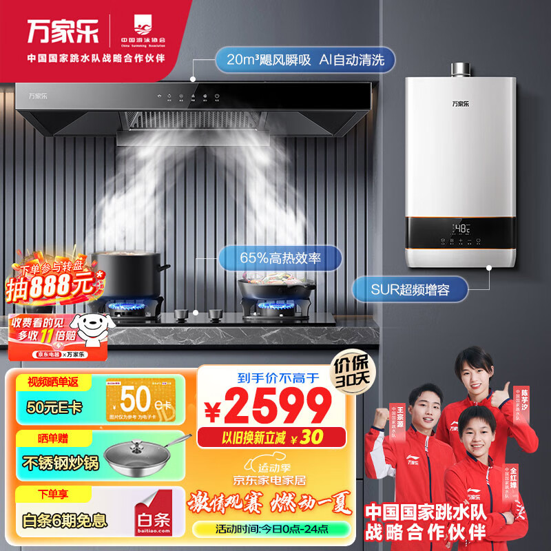 万家乐烟灶热三件套装 20立方挥手烟灶16L增容四季随温感热水器多件套装AT051+KV061B+16D5S天然气价格:2799.00元!