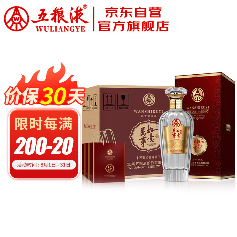 五粮液股份 万事如意纯香 纯粮食浓香型白酒 52度500ml*6瓶 中秋送礼价格:2238.00元!