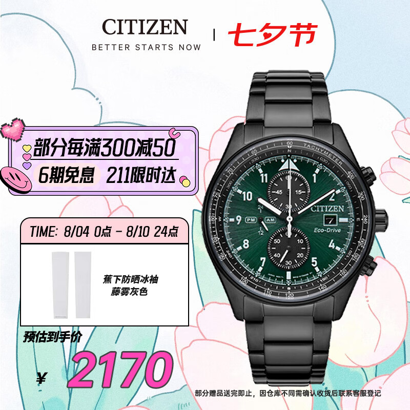 西铁城(CITIZEN)手表男日韩表FF系列光动能绿盘钢带商务七夕节送礼物CA0775-87X价格:2170.00元!