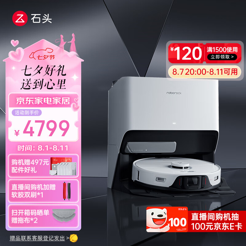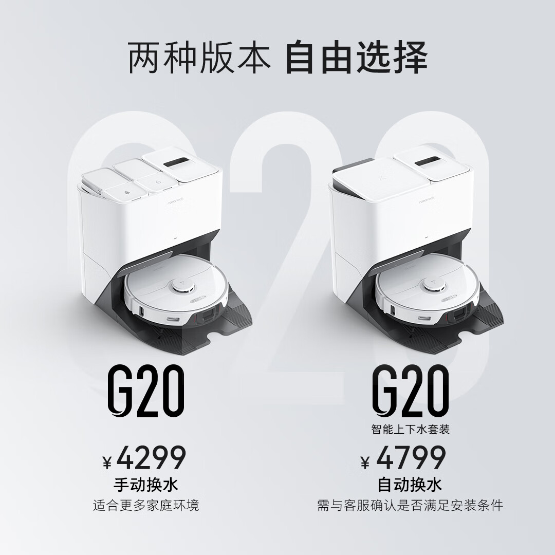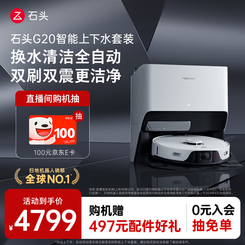 石头(roborock)G20 扫地机器人上下水新升级自动洗拖布自集尘大吸力扫拖一体机 G20智能上下水套装价格:4799.00元!