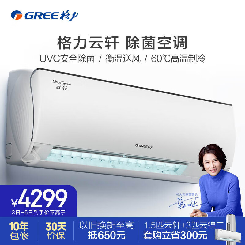 格力(GREE)1.5匹 云轩健康款 新一级 变频冷暖 紫外线除菌 壁挂式卧室空调挂机 格力空调KFR-35GW/NhHd1BG价格:4299.00元!
