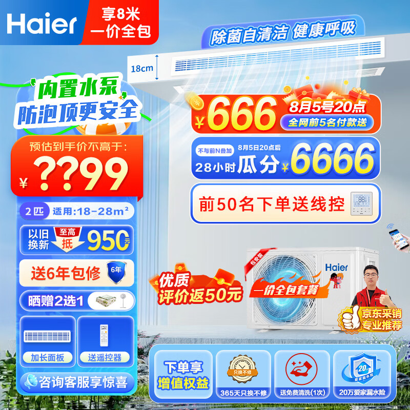 海尔(Haier)风管机一拖一2匹中央空调劲风智能变频家用内置水泵健康自清洁 KFRd-50NW/71DCA83(P)价格:6099.00元!