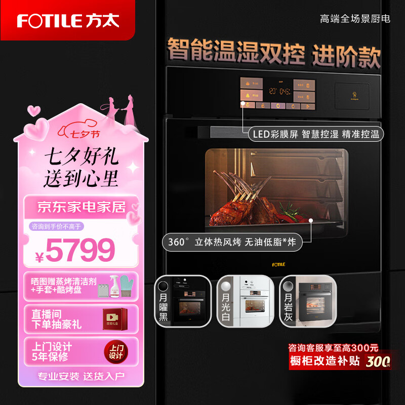 方太(FOTILE)彩膜屏款蒸烤箱一体机 嵌入式家用智能蒸烤炖炸四合一手机智控脱脂炸55L大容量蒸箱烤箱ZK50-EF1.i价格:5799.00元!