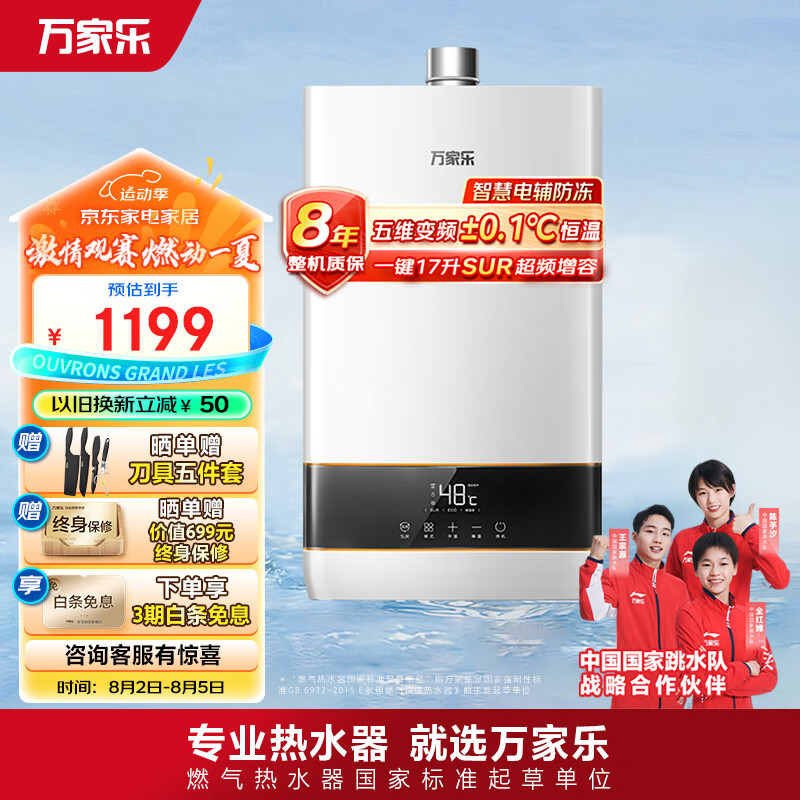 万家乐 16升燃气热水器佛山标准产品家用天然气恒温水气双调四季随温感智能节能SUR增容JSQ30-16D5S(F)价格:1199.00元!