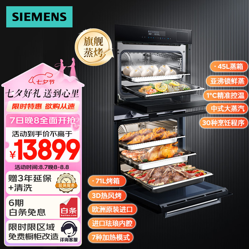 西门子蒸烤箱套装 德国原装进口烤箱+国产嵌入式蒸箱 自清洁HB534+CD289 烤59.5CM蒸45.5CM高价格:13899.00元!