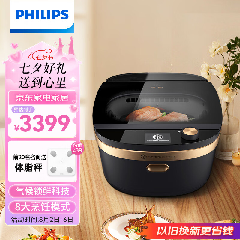 飞利浦(PHILIPS)空气蒸烤锅 家用蒸煮烤煎一体多功能料理锅NX0960/88价格:3399.00元!