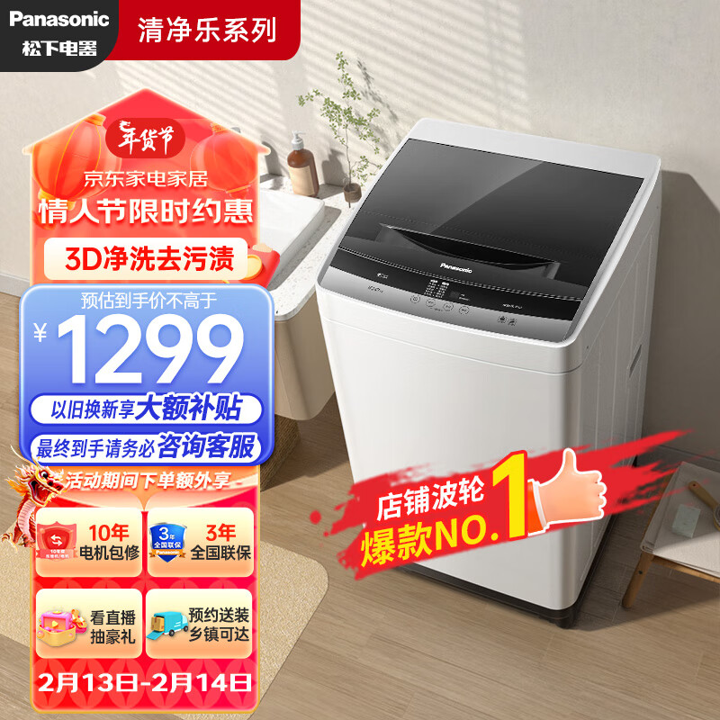 松下(Panasonic)波轮洗衣机全自动清净乐号 桶自洁耐脏 强力去污 10公斤 大容量 以旧换新 XQB100-3K1N7价格:1509.00元!