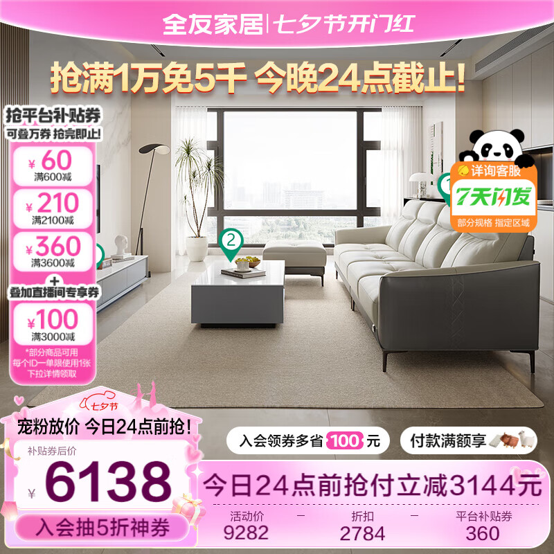 全友家居 简约客厅3件套装102710皮沙发岩板茶几电视柜主柜客厅家具价格:9282.86元!