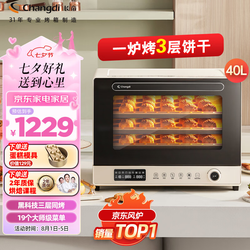 长帝(changdi)家用风炉电烤箱 40升专业多功能烤箱 搪瓷内胆 多层同烤 长帝大白鲸价格:1229.00元!