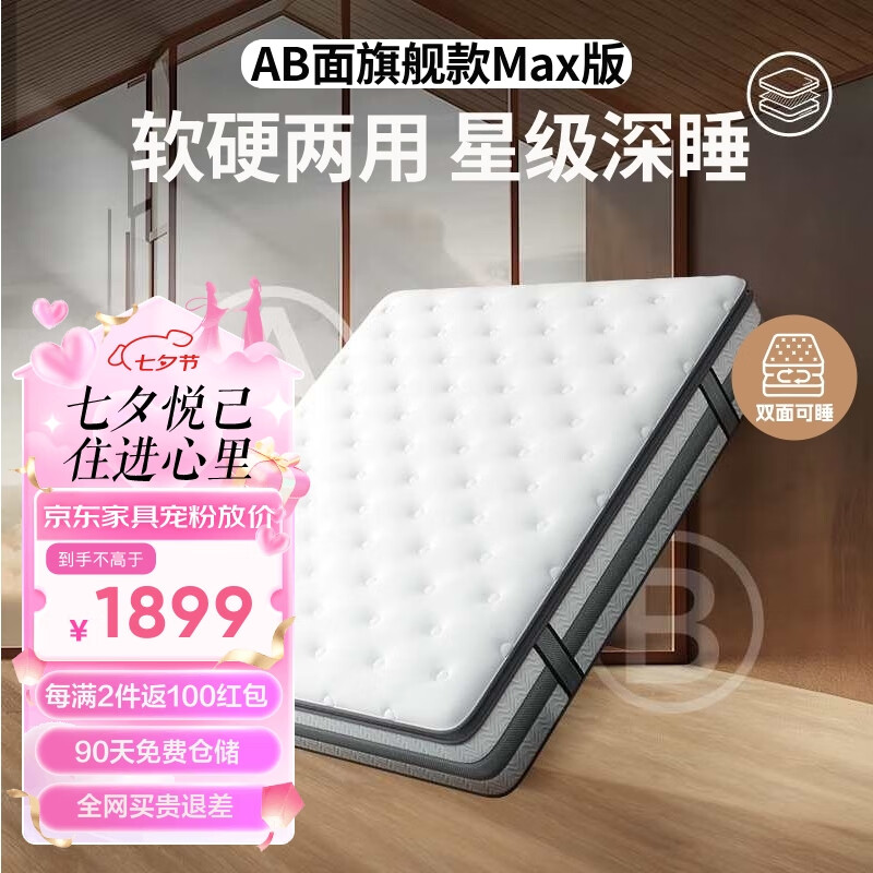 网易严选AB面弹簧床垫1.5*2米 进口乳胶床垫 抑菌防螨独袋弹簧 旗舰款Max价格:2299.00元!