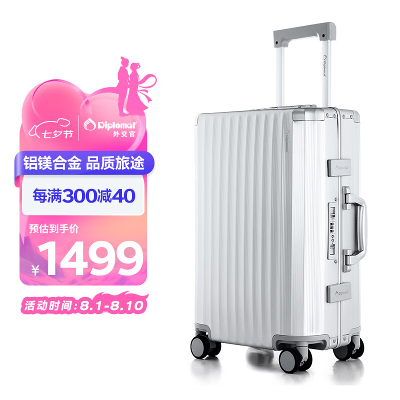 Diplomat外交官行李箱时尚镁铝合金铝框男女旅行拉杆箱TL-25052银色20英寸价格:1699.00元!