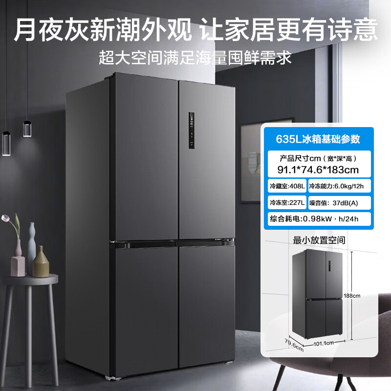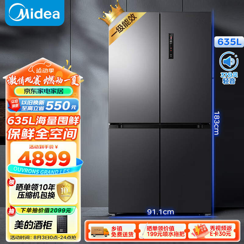美的(Midea)666超大容量十字双开门四开门一级能效节能双变频风冷无霜智能家用电冰箱以旧换新MR-666WSPZE价格:5399.00元!