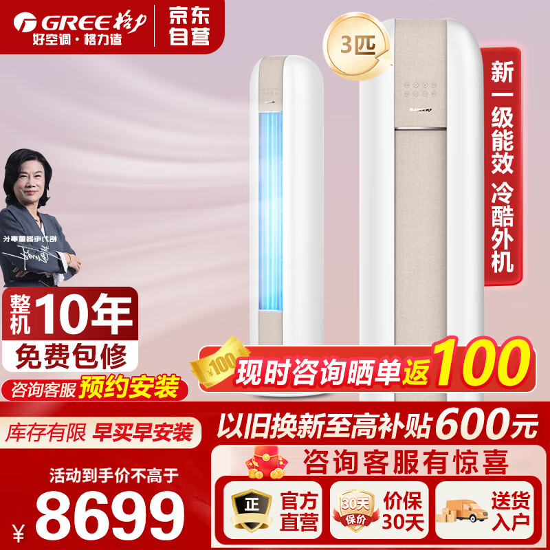 格力(GREE)空调 3匹时光绘(同云之海) 新一级能效变频冷暖 高温自清洁 大风量 客厅圆柱式空调柜机 智选(1)价格:8299.00元!