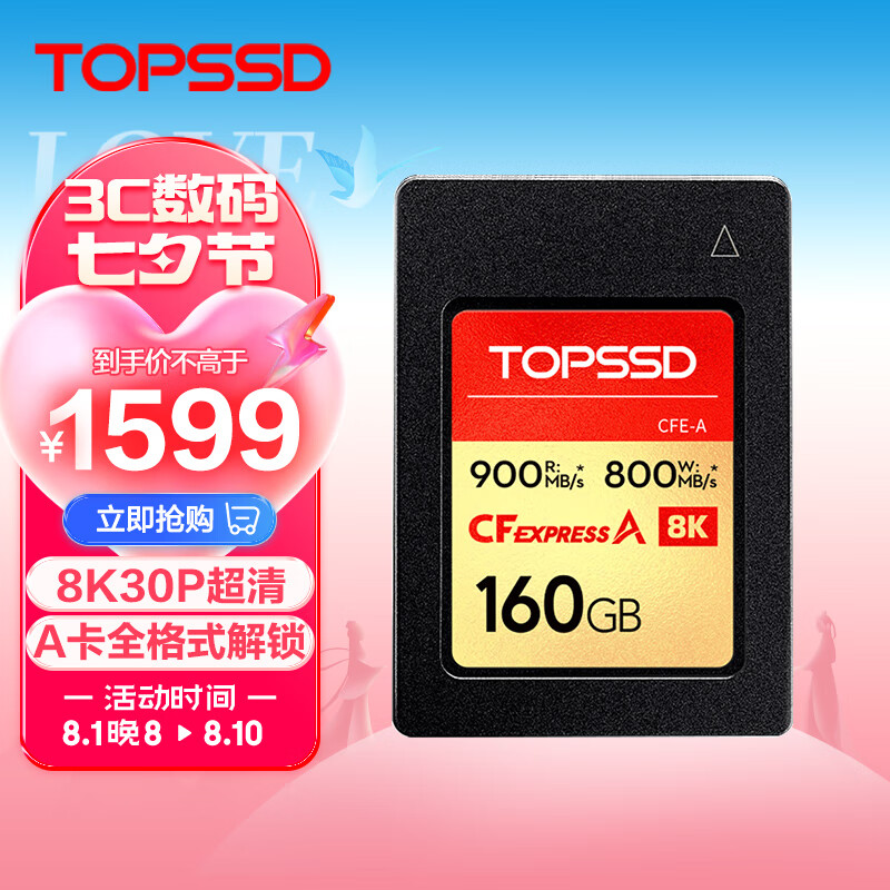 天硕(TOPSSD)CFE-A卡 cfe相机储存卡 高速900MB/s_CFexpress存储卡 索尼相机内存卡160GB价格:1599.00元!
