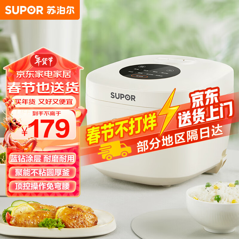 苏泊尔(SUPOR)电饭煲电饭锅3L蓝钻厚釜内胆2-6人一键式烹饪菜单上蒸下煮多功能家用智能电饭煲30FC671价格:179.00元!