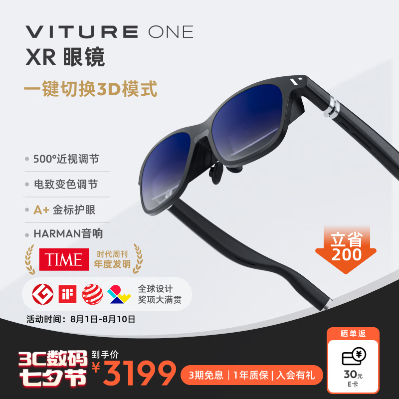 VITURE One AR眼镜 电致变色调节 近视调节 iOS端多屏体验 HARMAN音响 非VR眼镜 同vision pro投屏体验价格:3399.00元!