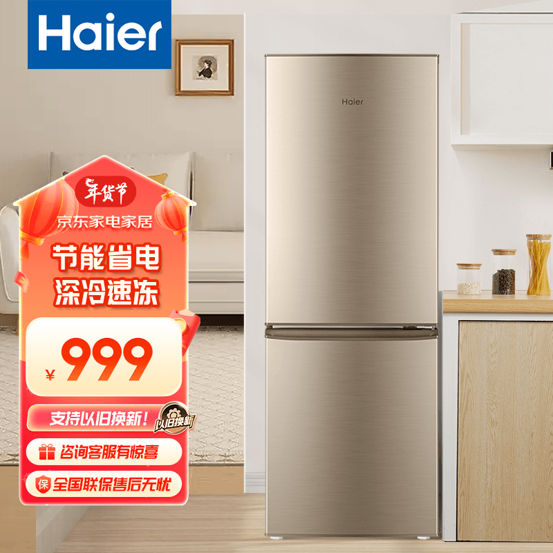 海尔(Haier)冰箱180升小型家用宿舍租房家电双门小冰箱节能省电深冷速冻直冷迷你两门电冰箱价格:999.00元!